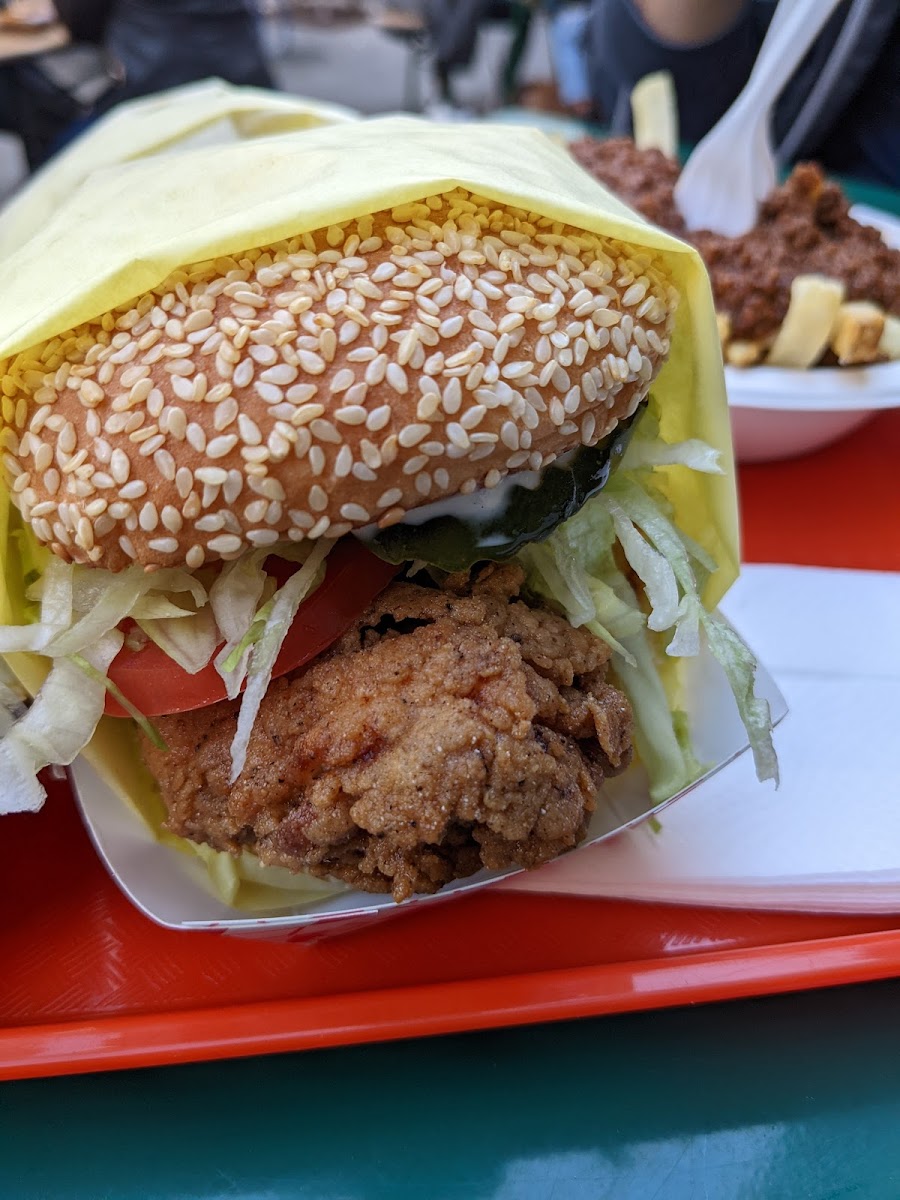 The star of the menu is, without a doubt, the Chili Cheese Burger ($8.00), a succulent beef patty smothered in rich chili and melted cheese, topped with pickled jalapeños for that extra kick. Each bite is an explosion of flavor, perfectly complemented by the sharpness of mustard. If you're in the mood for something crispy, the Fried Chicken Sandwich ($9.00) is a must-try, featuring a tender chicken breast paired with fresh lettuce, ripe tomatoes, and zesty mayo, all adding up to a delightful crunch in every mouthful.